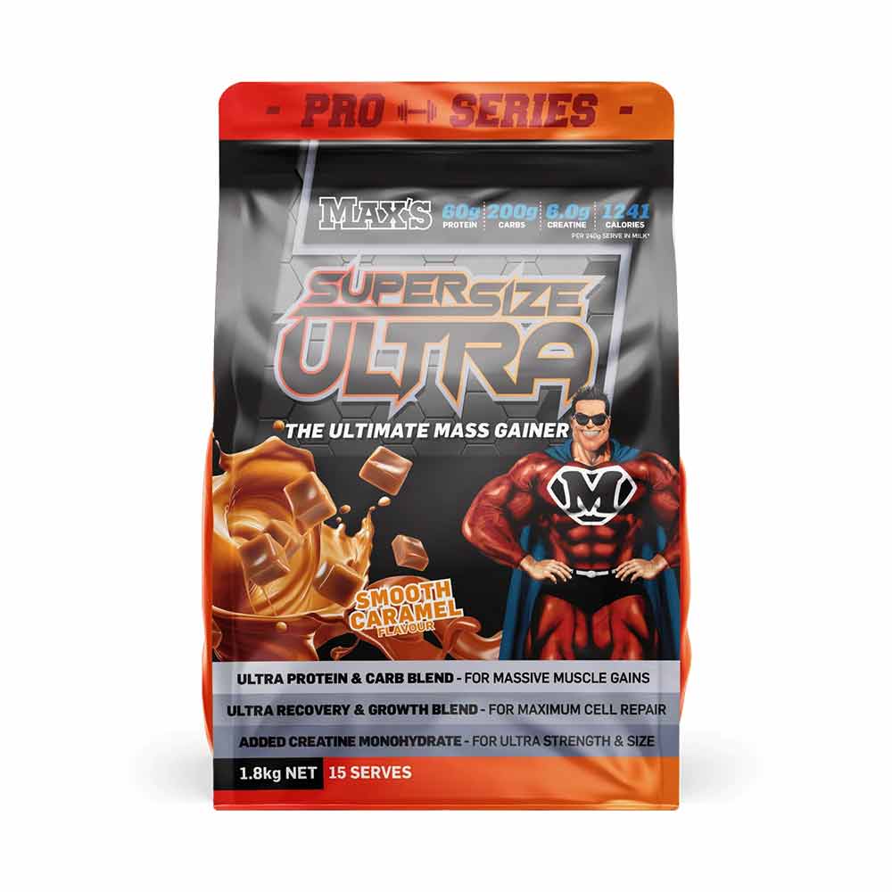 MAX'S Pro Series Supersize ULTRA combines all the nutrients you need to pack on size in one great formula. You get BIG protein, BIG carbs, amino acids and creatine all in the one delicious formula - ideal for athletes and trainers who are training hard and heavy to build maximum size, strength and power.